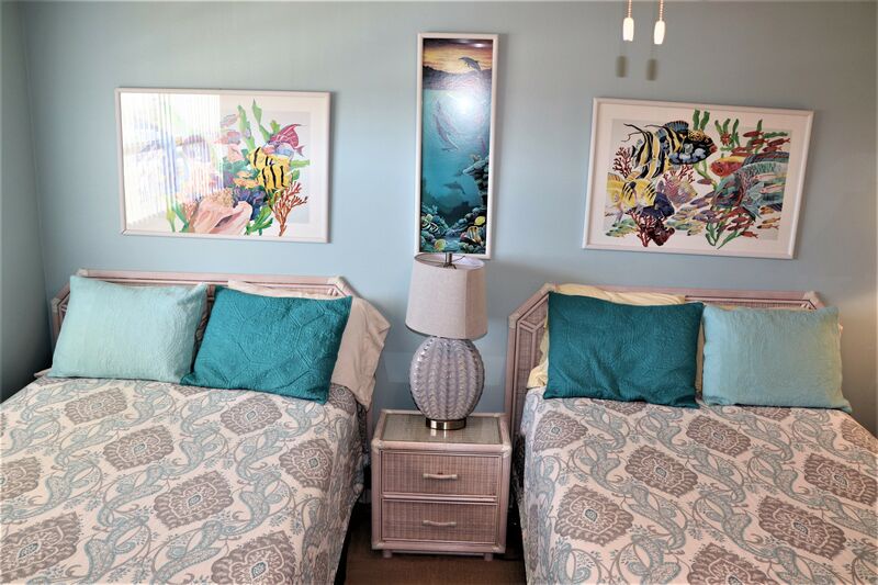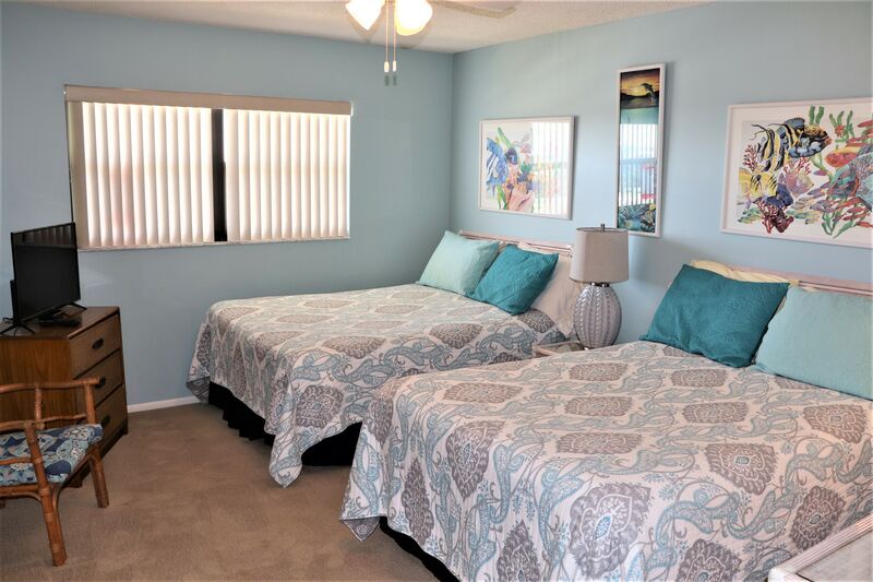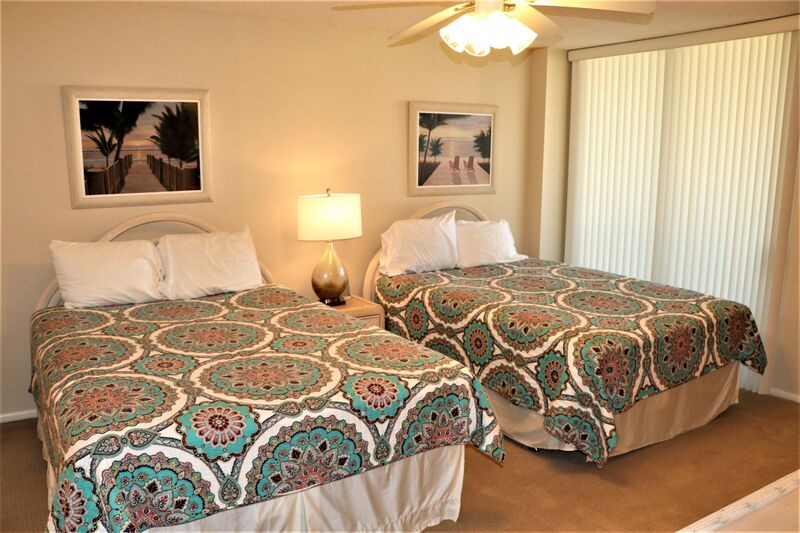 B708 has one of the best views at Gulf & Bay Club as it looks over the grounds to the Gulf/Beach during the day as well as the lighted interior courtyard in the evening. With its newly renovated marble bathrooms as well as new carpeting/updated furniture and bedding this unit gives you the best there is to offer in a "home away from home" unit. Although not called "The Penthouse", it is located on the top floor of the complex making it one of only a few units in the rental program that offer this outstanding view. With the larger floor plan in the "B" building, this unit is equipped with 2 Queen beds in the Master and 2 Double beds in the guest room. All new Flat Panel high definition TV's.