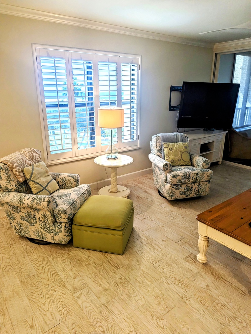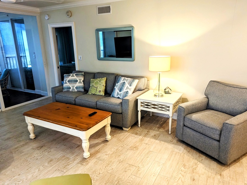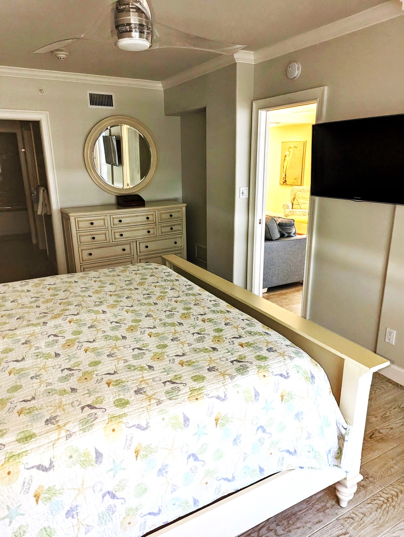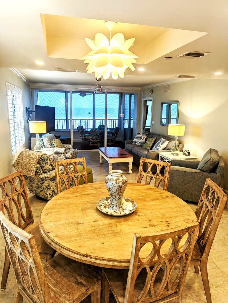 This beautiful 3-bedroom 2 bath end unit with a direct view of the Gulf of Mexico. This unit updated and very well furnished with a fully equipped kitchen. It also has an enclosed lanai with sliding windows for you to enjoy the gulf breeze while eating, lounging or just enjoying Florida’s beautiful sunsets. All bedrooms have TV’s and the condo is Wi-Fi equipped. Large master bedroom with a king size bed and direct view of the gulf. The master bath has double sinks, a standalone shower as well as a whirlpool bathtub. The second bedroom has a king size bed and the third bedroom has bunkbeds with a full size on bottom and twin size on the top. Also has utility room with a full-size washer/dryer. Full access to luxury resort amenities such as 3 heated swimming pools, 6 tennis courts and a fitness center just to name a few and only steps away from the white sandy beach. This very spacious, comfortable unit provides the ultimate vacation and is waiting for your arrival!