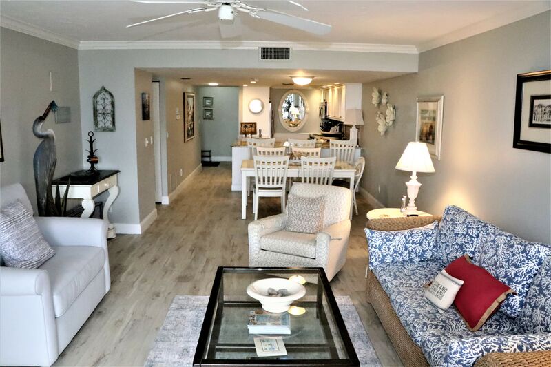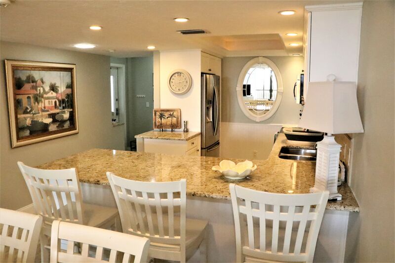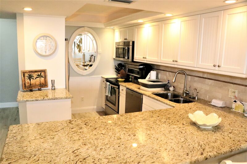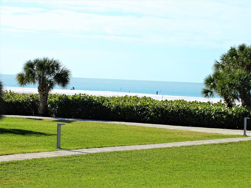 Welcome to Gulf and Bay Club! Enjoy being on the ground floor of the " In-Demad" E building with direct beach access ! This condo affords you the ability to walk out your lanai door and be on the beautiful Siesta Beach within steps ! Our luxurious main Olympic size swimming pool is also conveniently located in " your back yard. " This unit is waiting for you to occupy. It has 3bedrooms/2 baths, utility room with washer/dryer, beach chairs and all you would need and more to have an enjoyable vacation. You are guaranteed to be able to relax in this BEAUTIFUL, tastefully decorated condo. This unit has been updated with stainless steel kitchen appliances, granite counter tops and provides you with plenty of pantry storage. Take advantage of the state of the art fitness center, saunas/spas, 3 heated swimming pools, 8 tennis courts (2 converted for pickle ball), shuffleboard, basketball/racquetball, tiki huts, grilling areas, 2 clubhouses, with some of the most spectacular sunsets on the planet.