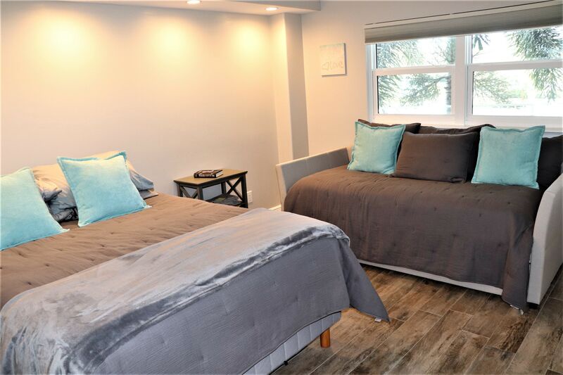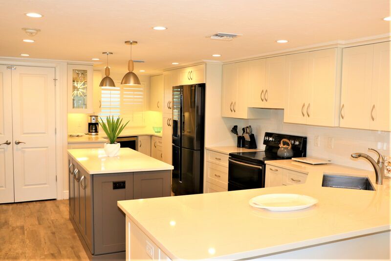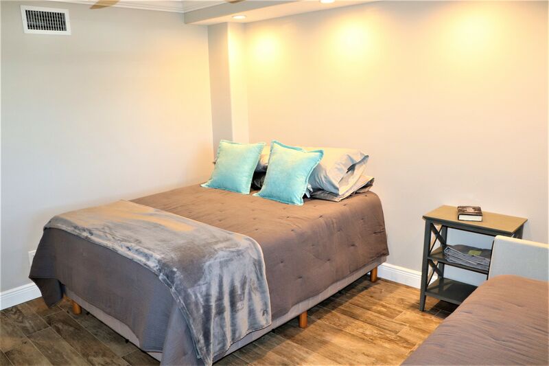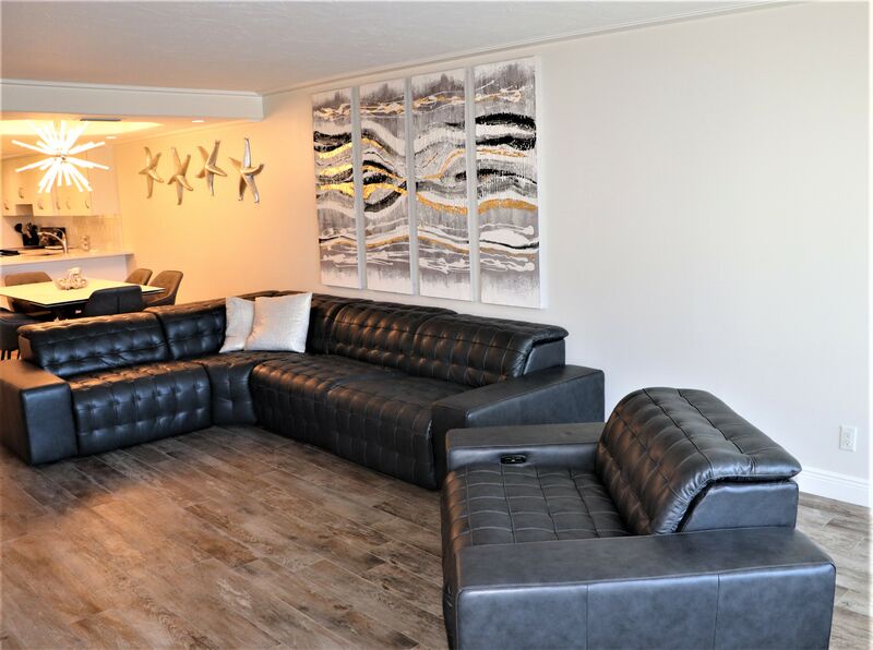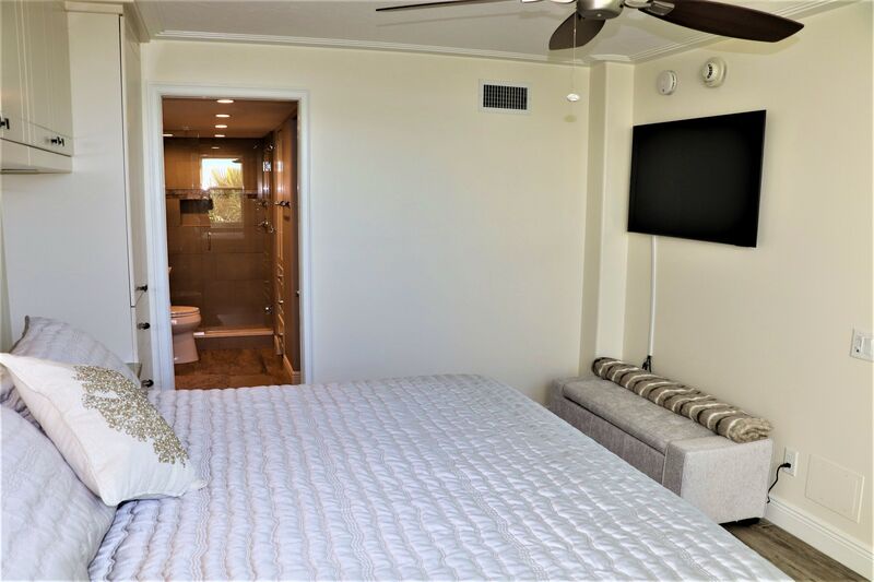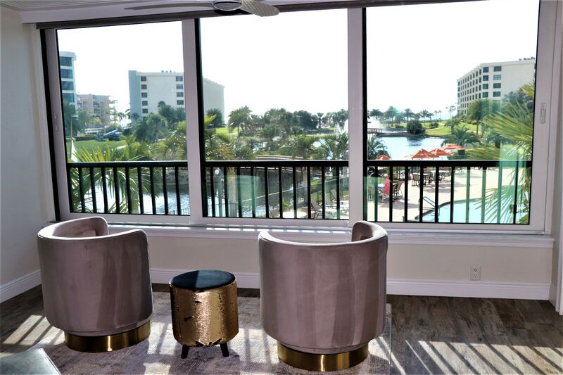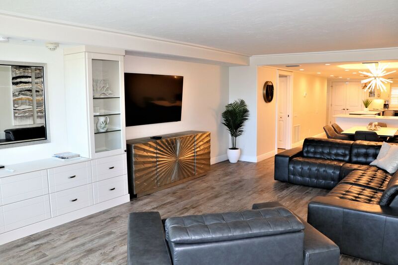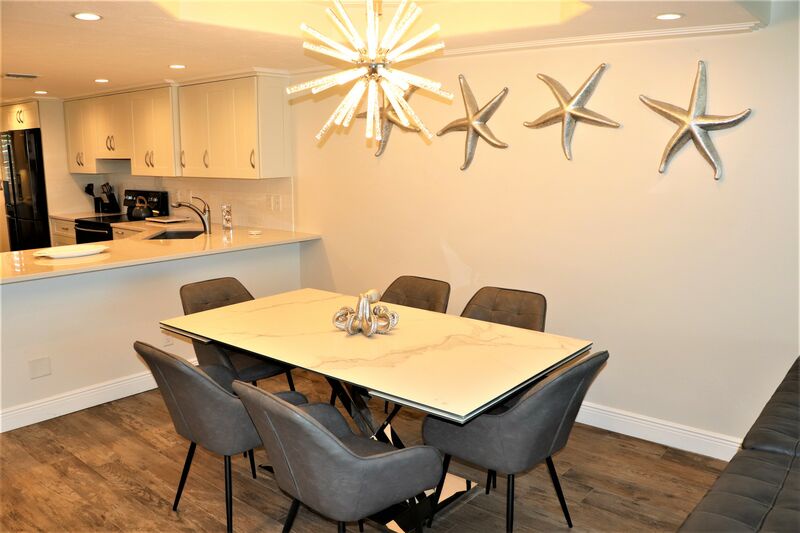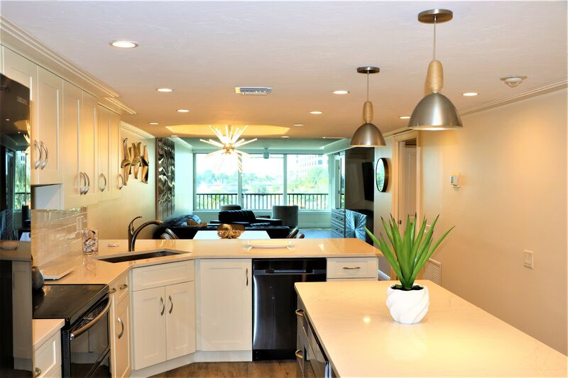 Come and enjoy a newly renovated and furnished 2 bedroom condo at the resort style Gulf and Bay Club. Enjoy this nicely appointed modern 1350 square foot condo for beautiful sunsets and tropical views  All of the furnishings are brand new and will sleep a minimum of six people with 2 full baths The unit has large sliding windows  that give you an outdoor feel with lots of seating to watch sunsets and lush tropical nights at gulf and bay. The renovations offer a custom built kitchen cabinetry and built ins in both bedrooms. This condo also sports recessed dimmable lighting throughout the unit. The master bed room offers a king size bed, a double sink bathroom with a multihead shower, custom cabinets and a walk in closet.  The guest bedroom has a queen size bed and a twin size day bed with trundle that sleeps 4.Â