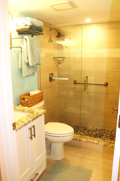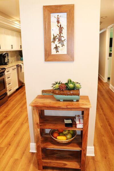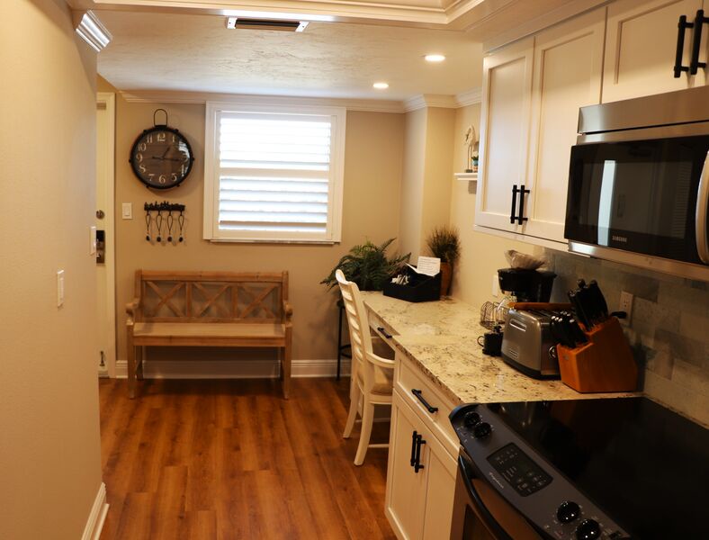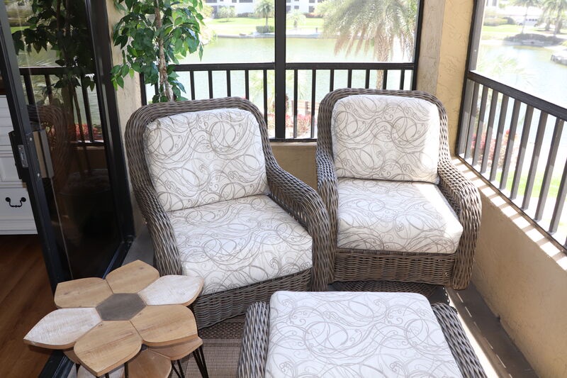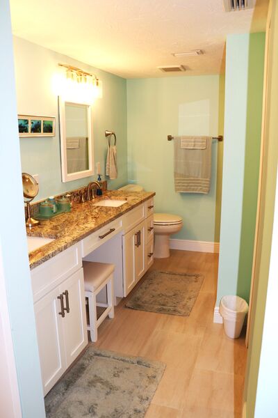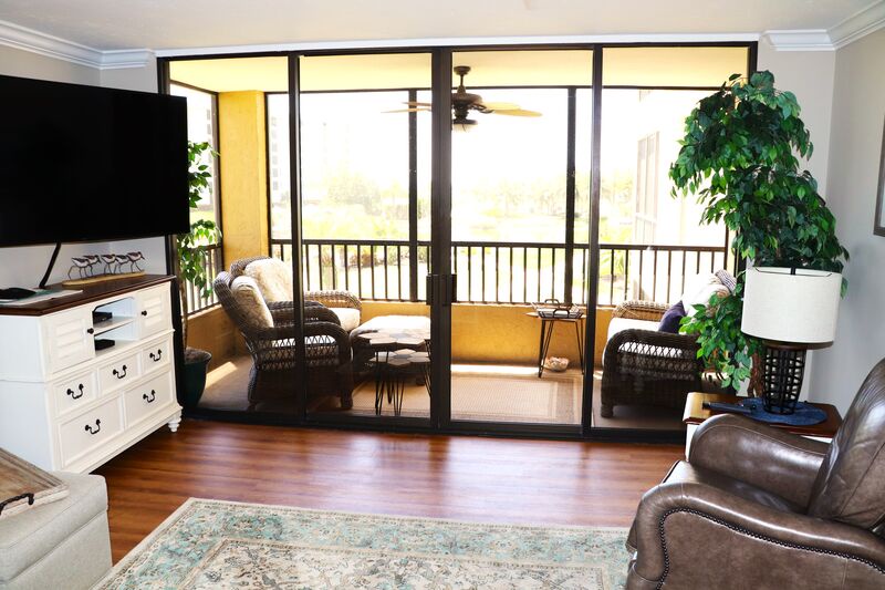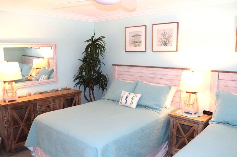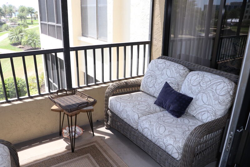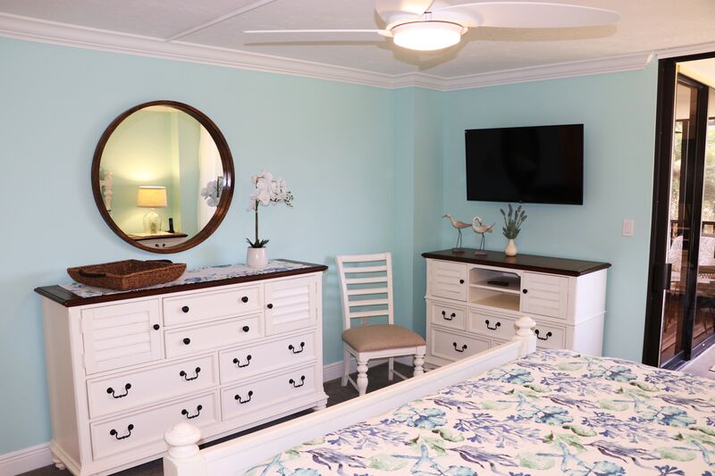 Kitchen has new granite countertops, a breakfast bar, updated appliances including a microwave, Keurig, and everything you will need to cook and entertain. The dining room seats 6 and the living room has 2 couches (one with a queen sleeper) for plenty of seating. Large screen TV, blue-ray, and a beautiful view! Lanai has comfortable seating for relaxing in the Coastal Lifestyle. There is a desk area in kitchen for catching up on emails using the high-speed wireless internet.