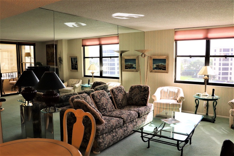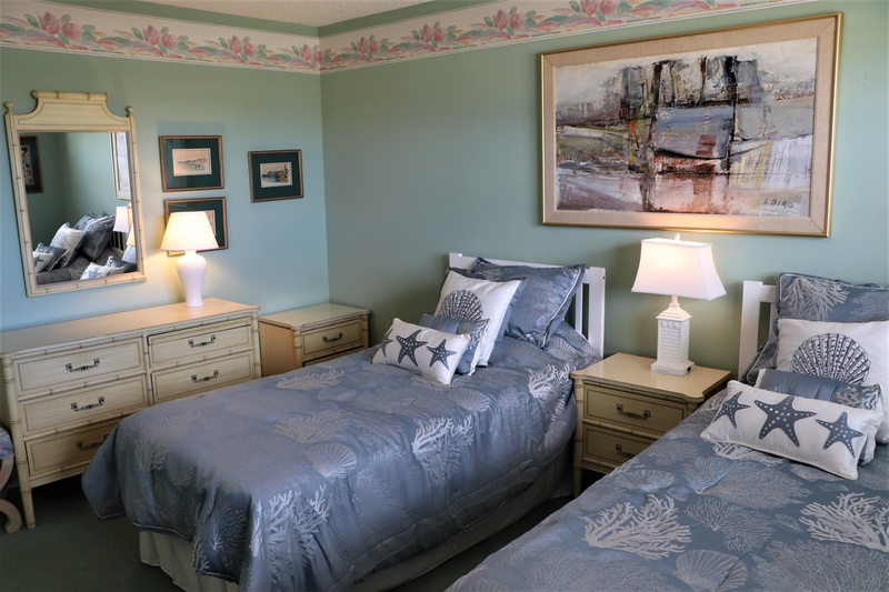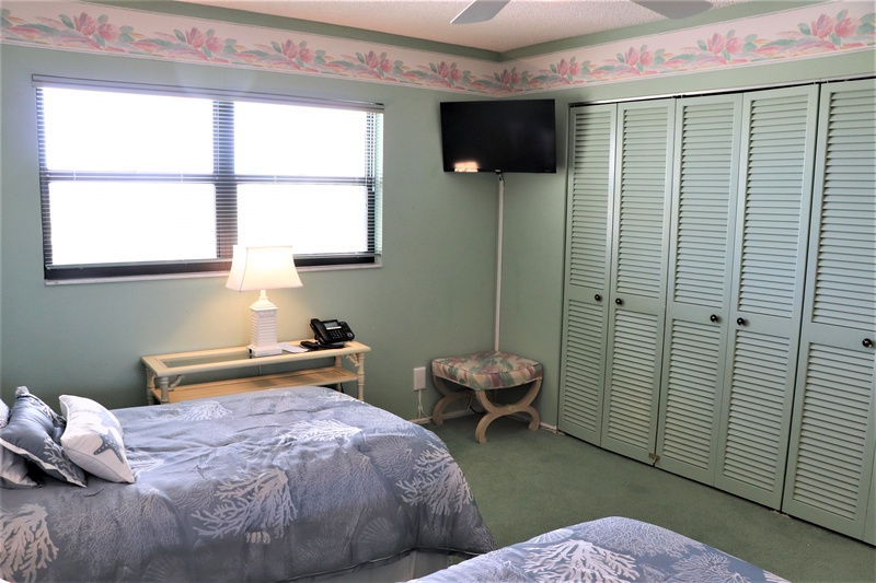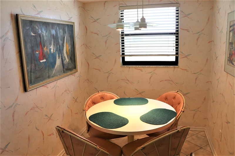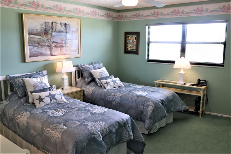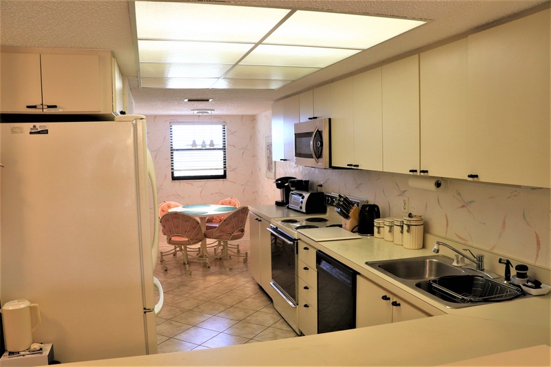 This clean and bright unit has views from the living room window of the sunrise, and gorgeous sunset views from both the lanai and the terrace by the front door. There are two bedrooms and a queen sleeper sofa. The master bedroom has a king size bed, new TV, sliding glass door access to the lanai and a large closet/storage area. The newly renovated master bath has a walk-in shower with grab bars. The second bedroom has two twin beds that can be separate or together. The second bathroom has a combined tub/shower. When dining there are three areas to choose from, the breakfast nook in the kitchen, the dining table in the dining area that can extend from seating six to eight, and the lanai where there is a table for four. The kitchen is bright and efficient in layout and the laundry room has a washer and dryer. The living room is large and welcoming with ample seating that optimizes the views of the groomed grounds of the club and the unforgettable Siesta Key beach.