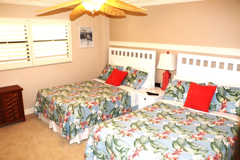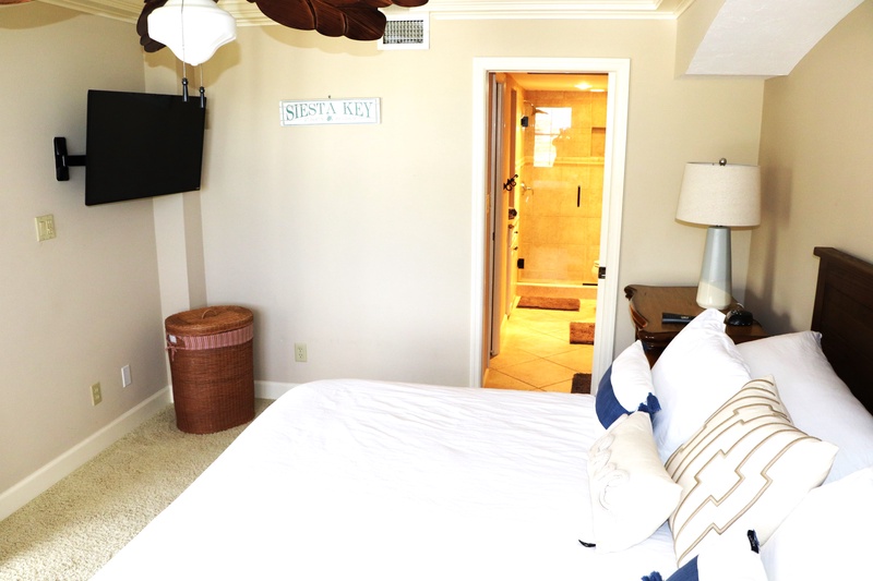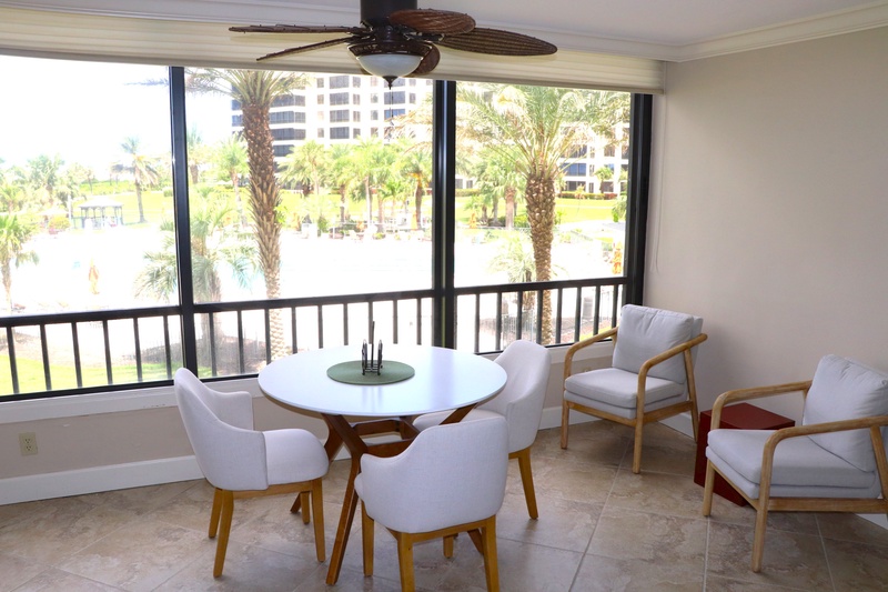Gulf and Bay is a fabulous beachfront condominium complex with private beach access to Siesta Key Beach and its world-famous white sands and warm waters. This complex features three heated pools, saunas, a hot tub, activity courts for tennis, pickleball, racquetball, and shuffleboard, a fitness center, and numerous tiki-themed BBQ areas surrounding the lakes. This beautifully furnished second-floor condominium has an updated kitchen with a wine fridge, a dining table, and a living space with a large sectional. The primary bedroom has a King bed and an ensuite bathroom with a double vanity and a walk-in shower. The second bedroom is delightfully decorated and has two full beds. A second bathroom with a walk-in shower and a washer and dryer are available for guest use. Best of all, this unit has picture-perfect views from the enclosed lanai overlooking the pool and tropical courtyard with the beach beyond!
