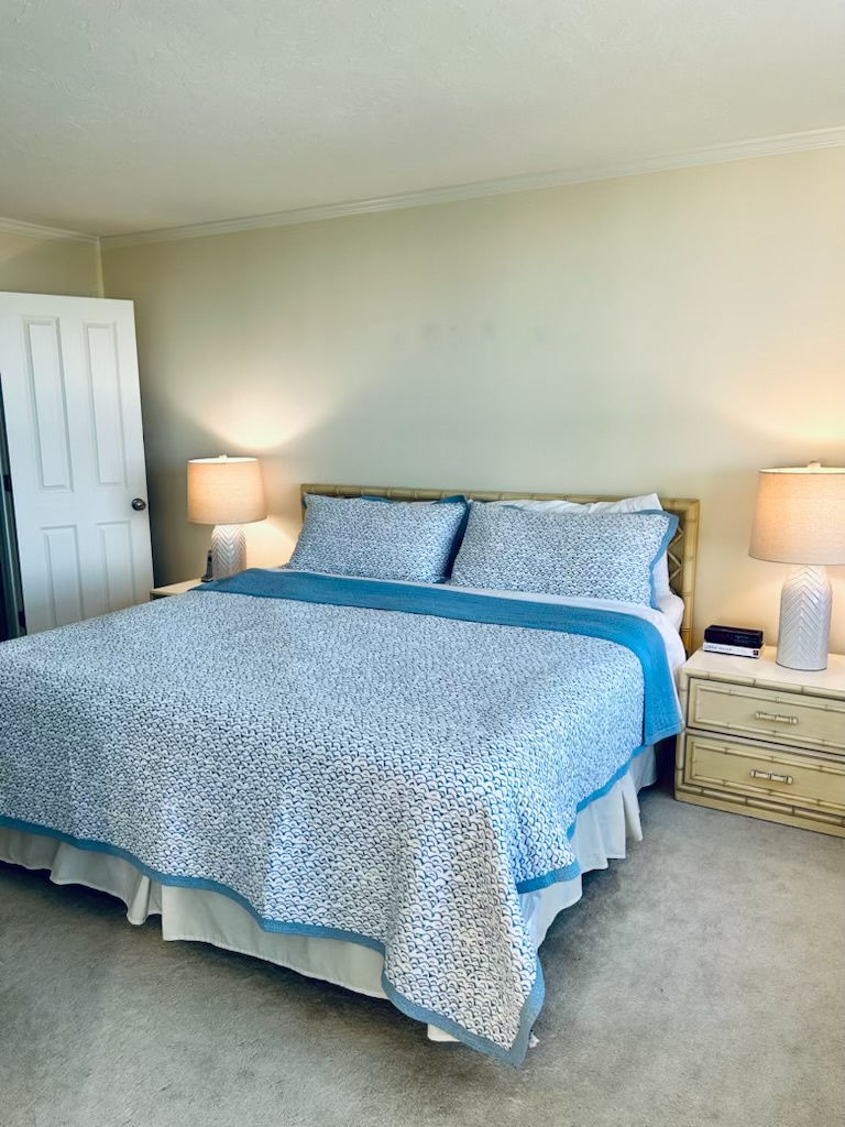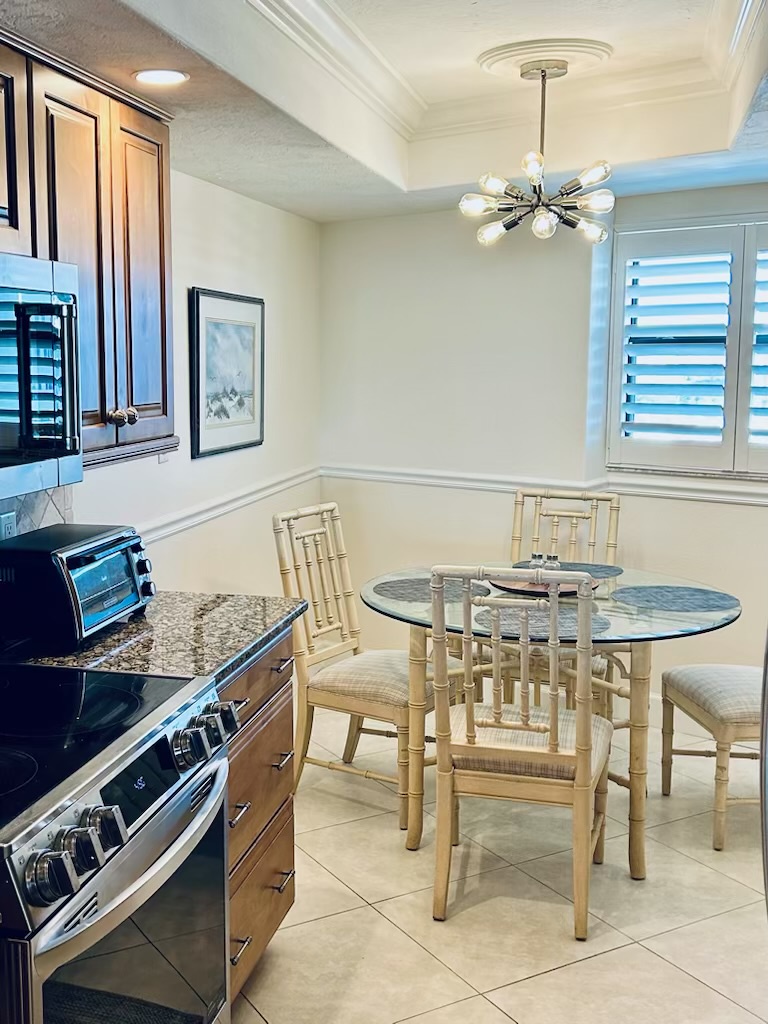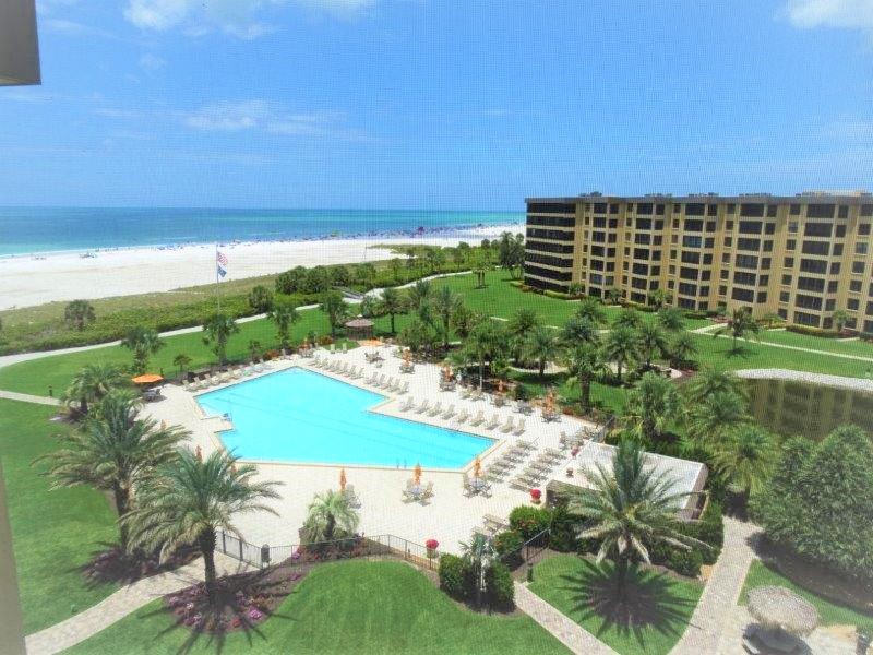 Gulf and Bay is a fabulous beachfront condominium complex with private beach access to Siesta Key Beach and its world-famous white sands and warm waters. This complex features three heated pools, saunas, a hot tub, activity courts for tennis, pickleball, racquetball, and shuffleboard, a fitness center, and numerous tiki-themed BBQ areas surrounding the lakes. This two-bedroom and two-bathroom condo has an open living space with luxury seating, a TV, and large windows with views of the pool and the Gulf of Mexico. The kitchen has stainless steel appliances, granite countertops, cookware essentials, and a glass dining table with chic chairs. The primary bedroom has coastal King bedding and an ensuite bathroom with a walk-in shower. The second bedroom is bright and has two twin beds. There is a hallway bathroom with a shower and tub combination, and a washer and dryer are available in the condo. This unit has picture-perfect views from the enclosed lanai overlooking the pool with the beach beyond!
