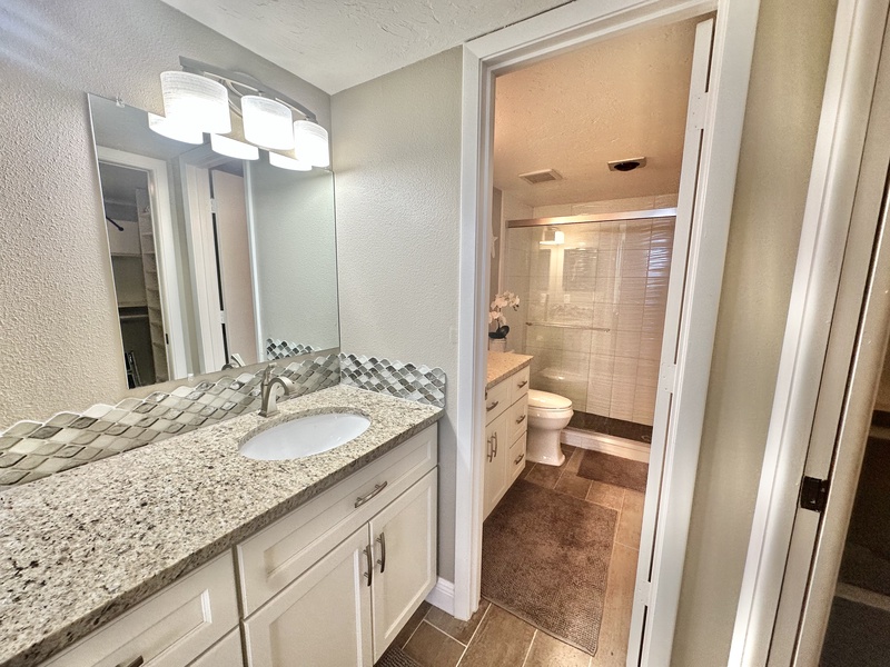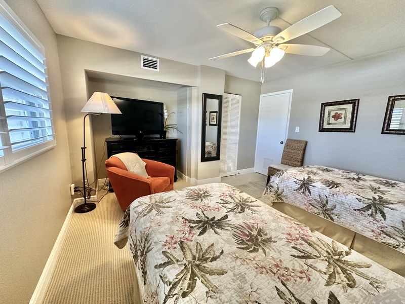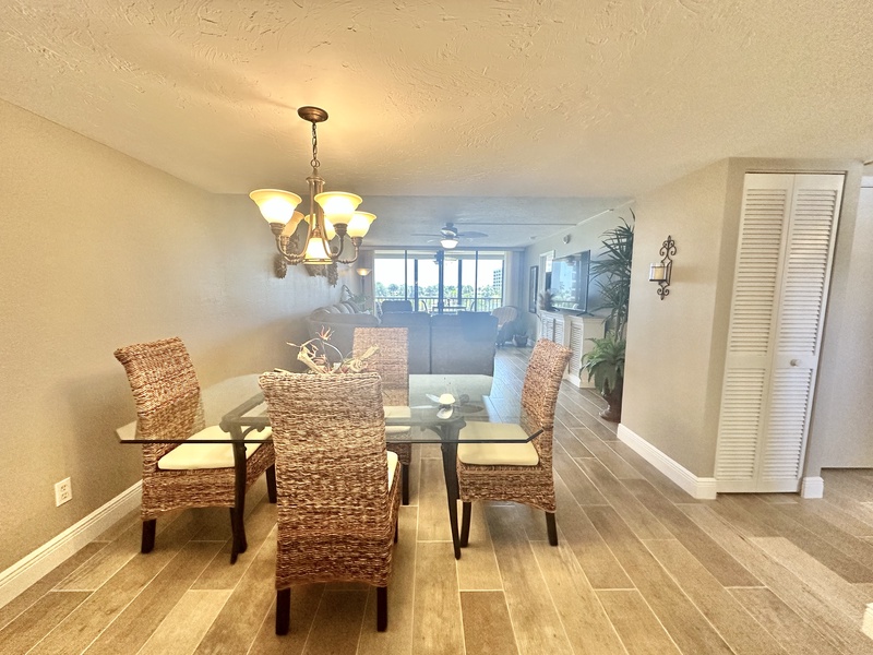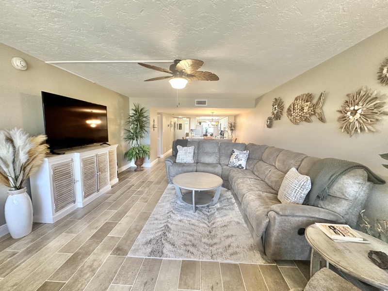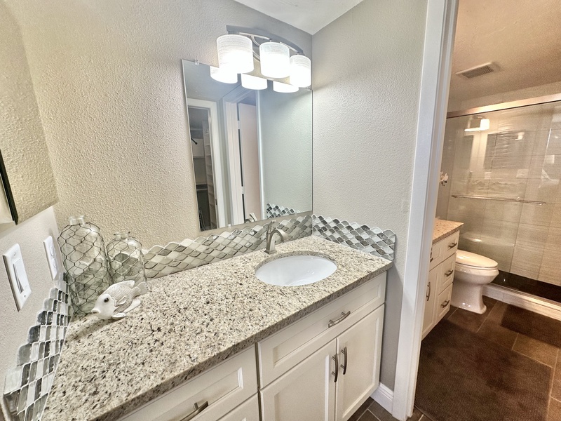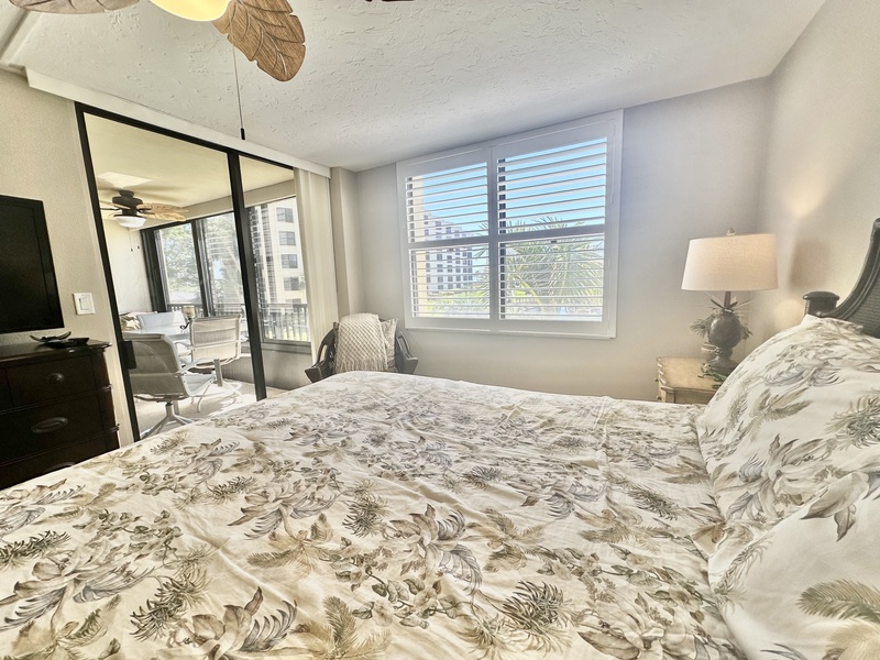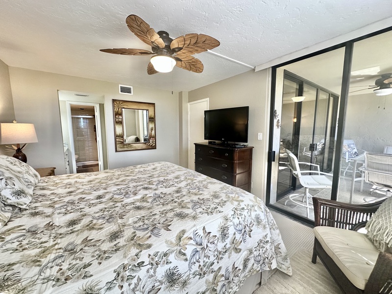 Welcome to Gulf and Bay Club C204! This beautiful two bedroom and two bath condo features a screened-in lanai with a dining table overlooking the condominiums lake, community pool, and you might just catch a glimpse of the Gulf of Mexico. Inside is a gorgeous, fully equipped kitchen, complete with all the necessary cookware, stainless steel appliances, a wicker and glass dining set that can accommodate four people and a large sectional couch with a TV. The main bedroom is a true oasis of comfort, featuring a king-sized bed adorned with plush bedding and tropical decor. The attached bathroom is equally impressive, boasting two vanities, a walk-in shower, and a walk-in closet. The second bedroom is charmingly decorated with Florida-style furnishings and has easy access to the hall bath, which includes a shower and tub combo. To ensure your utmost convenience, each room has a television, and a washer and dryer are readily available for use.